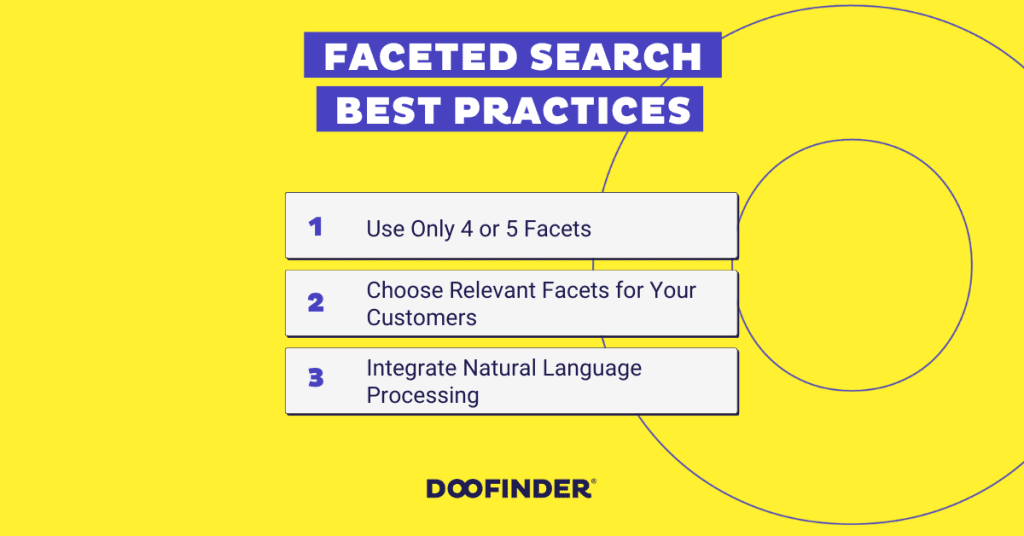 All articles Doofinder > Blog > Search & Discovery > What is Faceted Search? A Guide to Faceted Filtering What is Faceted Search? A Guide to Faceted Filtering Abigail Bosze 8 min CONTENTS When you’re shopping online, have you ever found yourself endlessly scrolling through pages and pages of search results, unable to find exactly what you’re looking for? It’s frustrating, right? That’s where faceted search comes in. It’s like having a personal shopping assistant to guide you to the perfect product. Imagine you’re walking into a really well-organized department store. Each section is labeled clearly, and items are grouped by similar attributes like size, color, and style. It’s easy to find what you’re looking for, right? That’s what faceted search is like! With faceted search on an eCommerce website, you can have that same experience online. You can quickly filter your search based on specific attributes that matter most to you, like price, color, brand, or material. And that’s important, not only for you as a shopper but also for eCommerce businesses. With eCommerce faceted search, businesses can offer a better customer experience, leading to increased customer satisfaction and higher conversion rates. So, in this blog, we’ll take a closer look at faceted searching, exploring how it works, why it matters, and how businesses can implement it effectively on their websites. Let’s get to it! 👉 What is Faceted Search? Faceted search, also known as faceted navigation, is a powerful tool that allows you to narrow down your search results based on specific attributes, such as size, color, price, and more. It’s like having a set of eCommerce filters that lets you quickly weed out irrelevant results and focus on the products that best match your needs. 👉 What is Multi-Faceted Search? Multi-faceted search is an extension of faceted searching that allows you to refine your search results based on multiple facets or categories simultaneously. For example, let’s say you’re shopping for a dress online and you’re looking for something specific, like a red dress with a high neckline and long sleeves. With multi-faceted search, you can refine your search results based on all of those attributes at once, rather than having to search for each attribute one at a time. Multi-faceted search can be really helpful when you’re looking for something very specific because it allows you to narrow down your search results quickly and efficiently. 👉 Facets vs Filters When you search for something on a website, you might notice there are different categories or characteristics you can use to refine your search, like color, size, brand, and so on. These categories are called facets. They help you narrow down your search results and find what you’re looking for more quickly. Now, filters are the actual tools you use to apply those facets to your search results. For example, if you’re searching for shoes and you want to narrow down the results to just running shoes, you would use a filter to do that. Filters are adjustable, so you can refine your search results as you go, depending on what you’re looking for. So, facets are the pre-defined categories that help you narrow down your search results, while filters are the actual buttons or tools you use to apply those categories to your search. Both are important for refining your search results and finding what you need on a website. 👉 How Does Faceted Filtering Work? When you search for something on a website that uses faceted search, you’ll usually see a list of categories or facets that you can use to refine your search. These facets might include things like price, color, size, brand, and more. Once you’ve selected one or more facets, the website will automatically filter your search results to show only items that match those facets. So, for example, if you’re searching for shoes and you select the color red and the brand Nike, the website will show you only red Nike shoes. Faceted searching is really useful because instead of scrolling through pages and pages of irrelevant search results, you can use facets to filter out the things you don’t want and focus on the things you do. What are the benefits of having search facets in your eCommerce? Thanks to these filters, your customers can intuitively and quickly get to the product they want. And navigability, as you know, is one of the elements that can help improve user experience. ✅ Better web positioning If that person has no difficulty in finding what they are looking for, they will spend more time on your website. This translates into a lower bounce rate (users that leave the web without clicking once) and better SEO positioning. ✅ Increased conversions Obviously, the more comfortable a user is on your web, the more likely it is for them to end up buying. To summarize: search filters = happier customers = more sales. 😉 👉How can eCommerce faceted search help your customers? ✅ Saves time Faceted search allows customers to quickly filter out irrelevant search results and focus on the products they’re interested in. This saves time and helps customers find what they’re looking for more efficiently. ✅ Helps customers make informed purchase decisions Faceted search provides customers with a range of facets to compare different products based on attributes like price, size, color, and more. This helps customers make more informed choices about the products they’re interested in. ✅ Increases customer confidence in their purchase decisions By giving customers the tools they need to make informed choices about the products they’re interested in, eCommerce faceted search can increase customer confidence in their purchase decisions. This can lead to greater customer satisfaction and repeat business. ✅ Provides a better shopping experience overall Faceted searching makes it easier for customers to find what they’re looking for and feel confiden